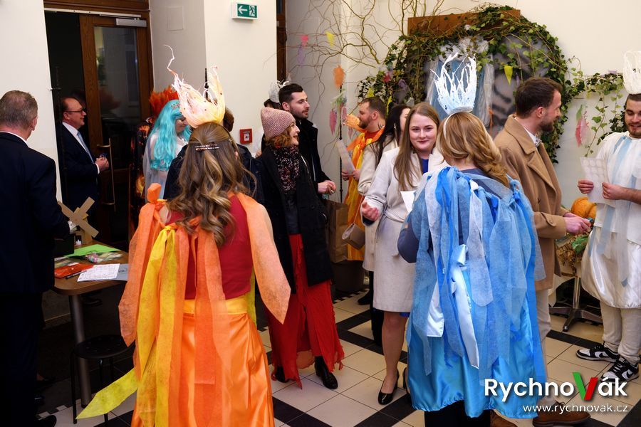 Na stolech větrný mlýn, svíčka, karafa s vodou v barvě živlu, krtkův perník či ohněm uzená klobása. Ceny v tombole pojmenované tajemně, nádherně navržené a zrealizované kostýmy, potisk triček pro celou Carminu, vstupenky s frkačkou a mnoho dalšího. Za tím vším stojí PLESOVÝ VÝBOR – DĚKUJEME mu za neutuchající vášeň vymýšlet nová témata a zpracovávat ples do celkové podoby, která stále láká a vyprodává Pelclovo divadlo. Carmině dík za to, že je baví pouštět se i do mimo-pěveckých vod herectví, tance a scénografie. Markétě Drhlíkové za nádherné grafické a výtvarné zpracování, Lence Neubauerové, Katce Talavaškové a Lucce Šafránkové za originální choreografie. Kapele Koplaho Band za skvělou muziku a zábavu, kterou bavila plný parket až do pozdních nočních hodin. Za rok nás čeká třicátý ples, tak si už nyní zapište do svých kalendářů termín 7. března 2026! Určitě to bude stát za to! RDS