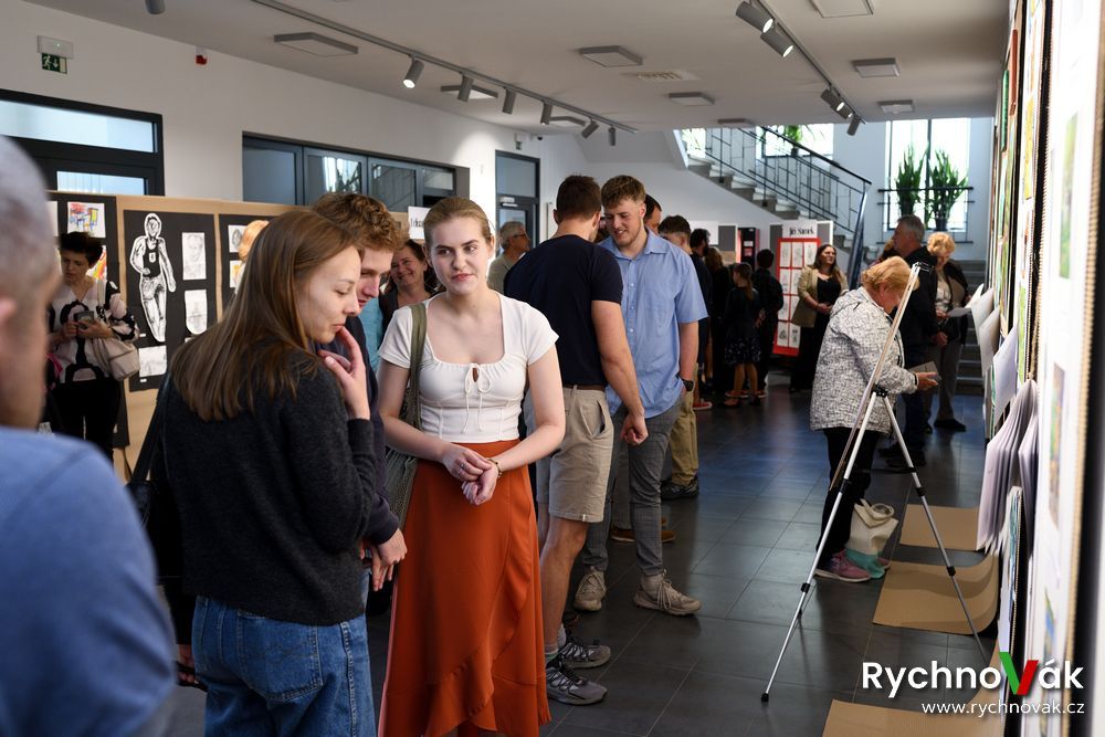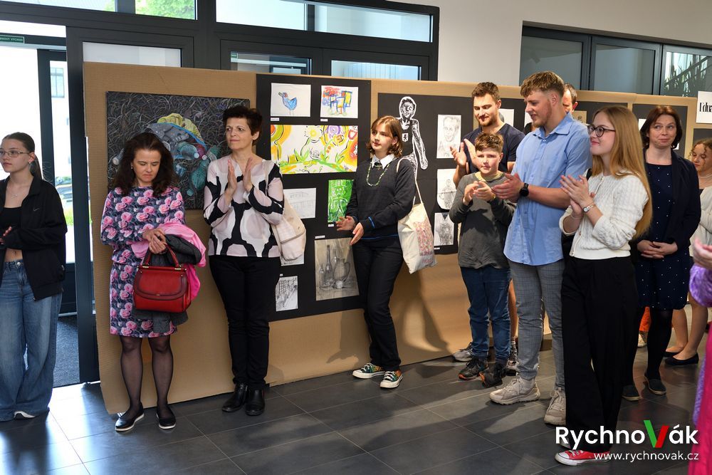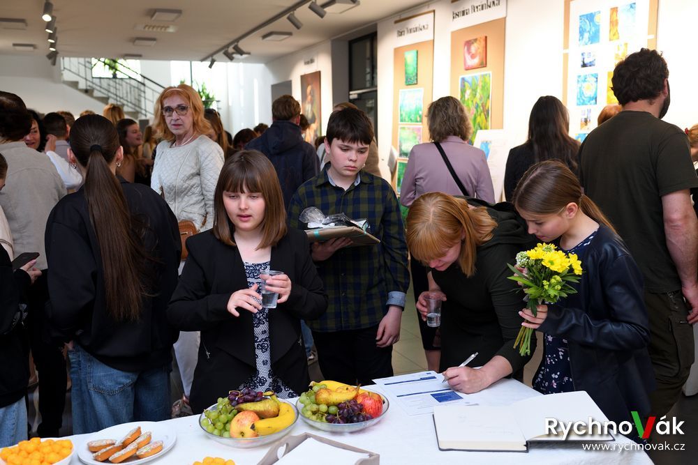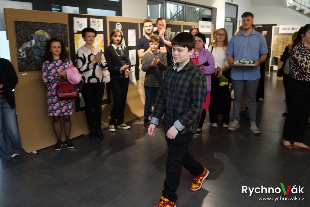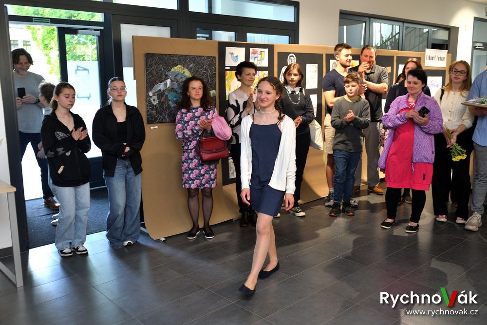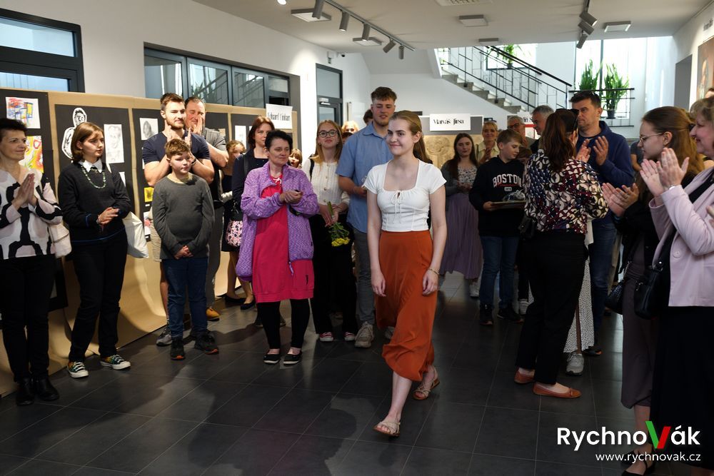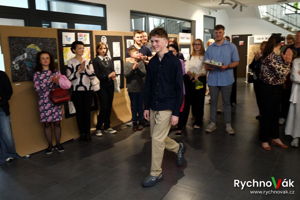 Rychnov nad Kněžnou, 23. května 2025 – Včerejší podvečer se Městská knihovna Karla Poláčka proměnila v místo setkání, inspirace a obdivu. Vernisáž výstavy absolventů výtvarného oboru ZUŠ Rychnov nad Kněžnou přilákala desítky návštěvníků – rodiče, přátele, spolužáky i další příznivce školy a umění. Už při zahájení v 17.30 bylo jasné, že knihovna „praská ve švech“.
