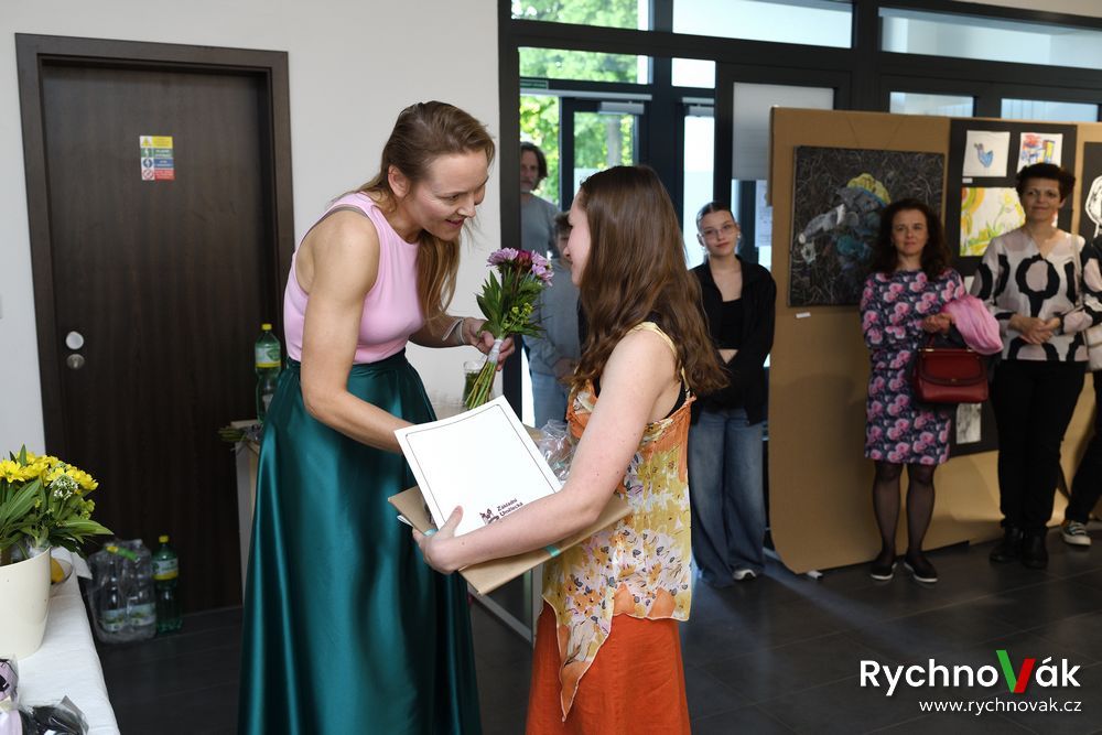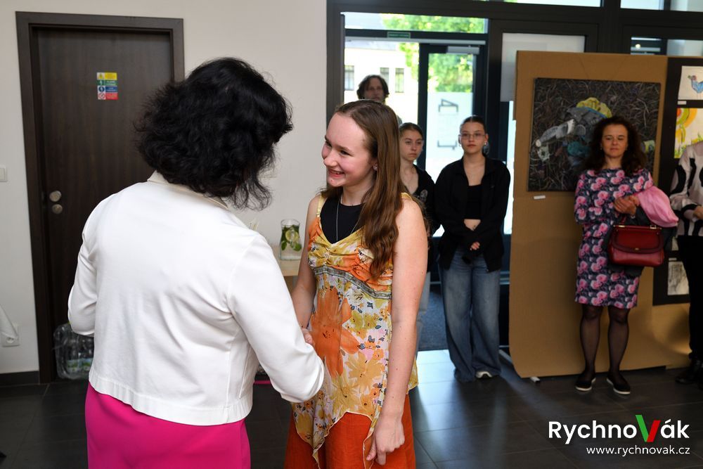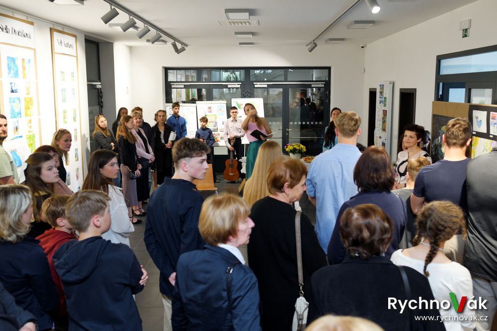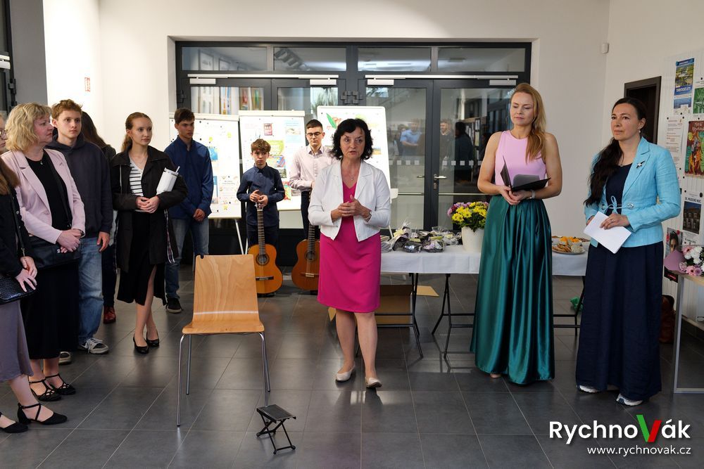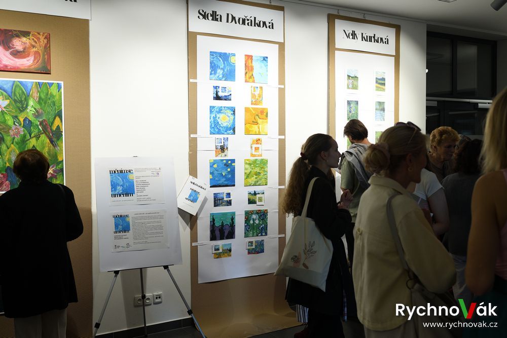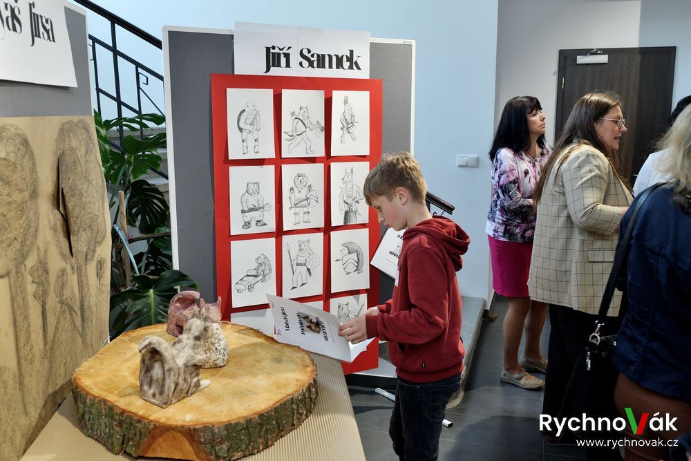Rychnov nad Kněžnou, 23. května 2025 – Včerejší podvečer se Městská knihovna Karla Poláčka proměnila v místo setkání, inspirace a obdivu. Vernisáž výstavy absolventů výtvarného oboru ZUŠ Rychnov nad Kněžnou přilákala desítky návštěvníků – rodiče, přátele, spolužáky i další příznivce školy a umění. Už při zahájení v 17.30 bylo jasné, že knihovna „praská ve švech“.