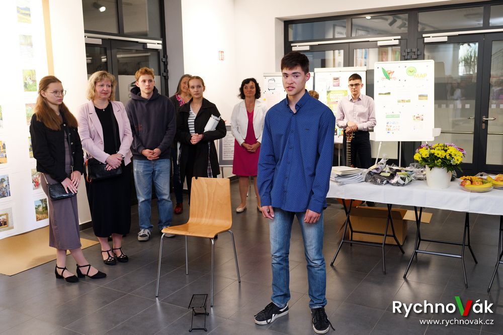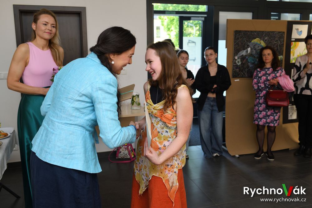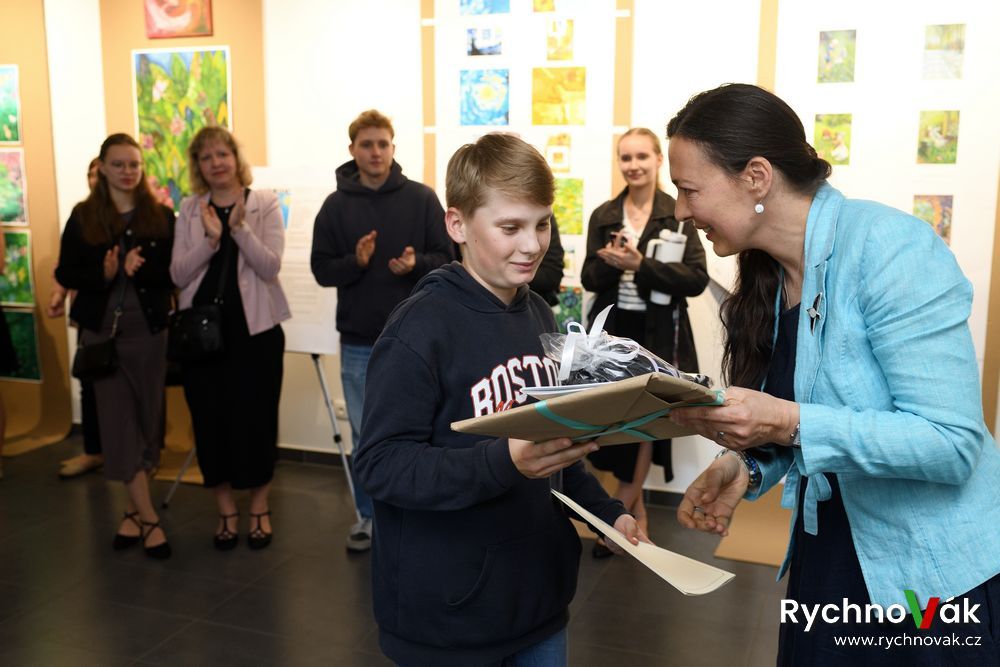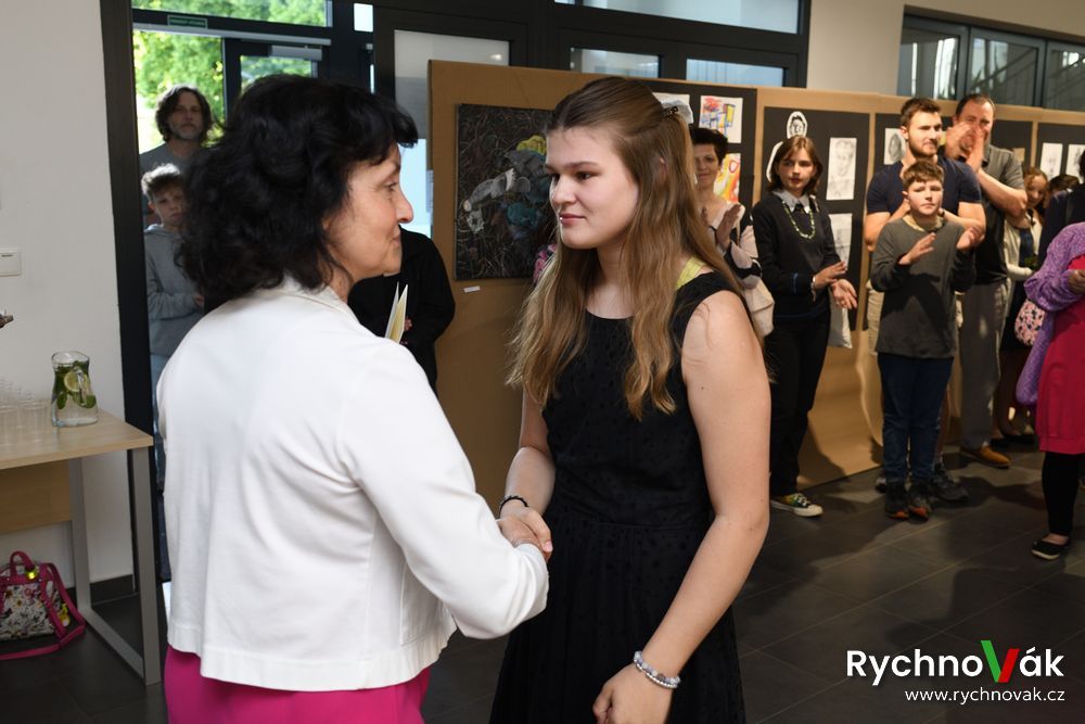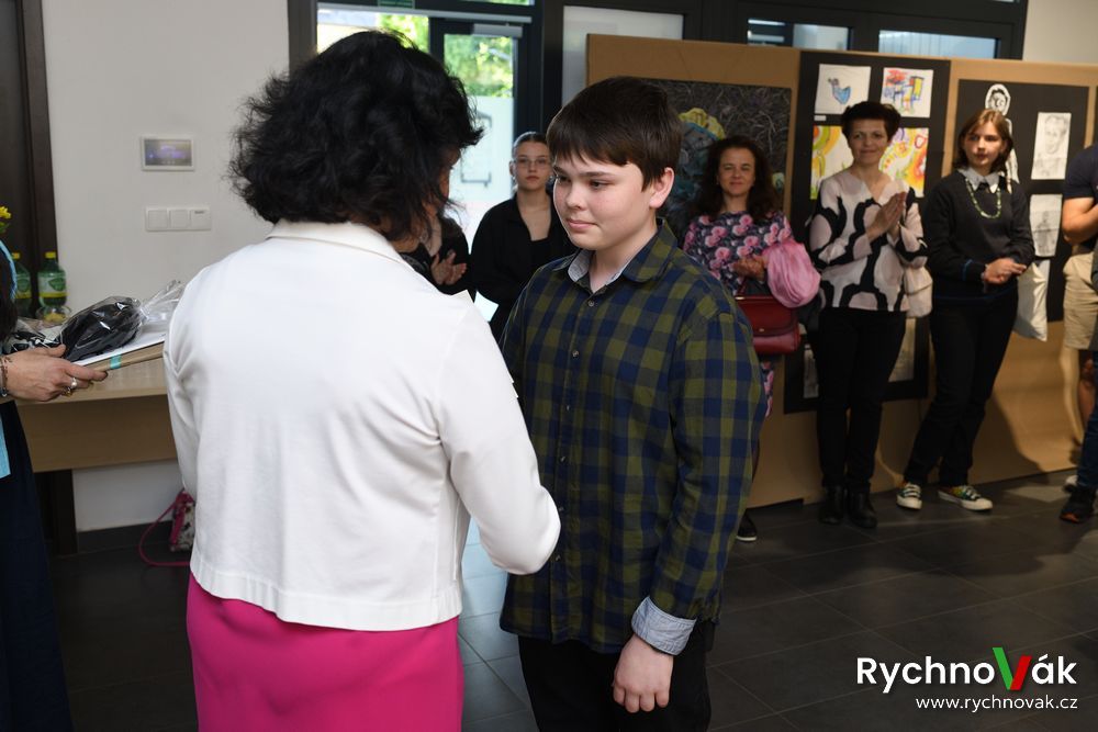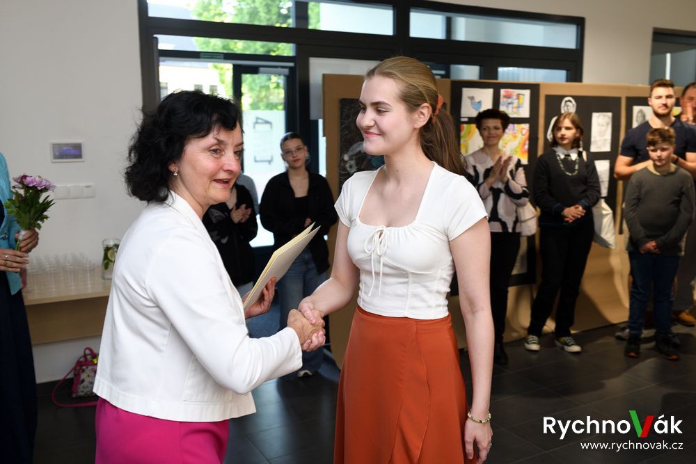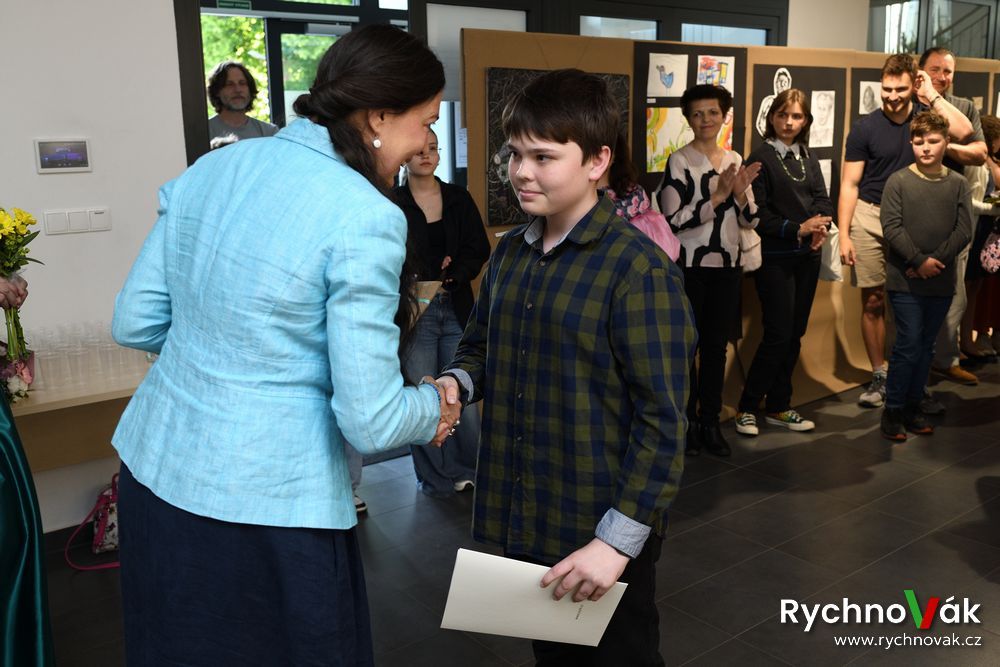 Rychnov nad Kněžnou, 23. května 2025 – Včerejší podvečer se Městská knihovna Karla Poláčka proměnila v místo setkání, inspirace a obdivu. Vernisáž výstavy absolventů výtvarného oboru ZUŠ Rychnov nad Kněžnou přilákala desítky návštěvníků – rodiče, přátele, spolužáky i další příznivce školy a umění. Už při zahájení v 17.30 bylo jasné, že knihovna „praská ve švech“.
