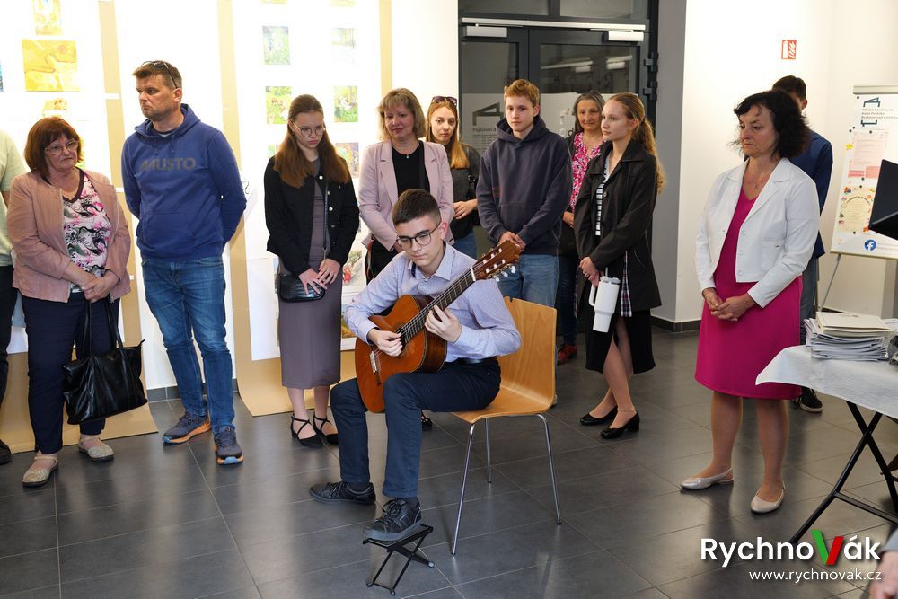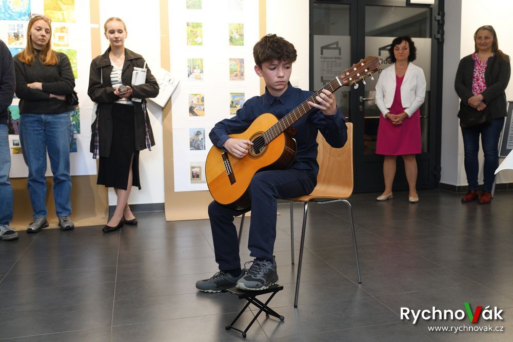 Doprovod vernisáže obstarali žáci kytarového a literárně dramatického oddělení ZUŠ, kteří svým citlivým přednesem podtrhli slavnostní atmosféru celé akce.