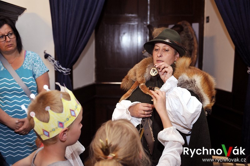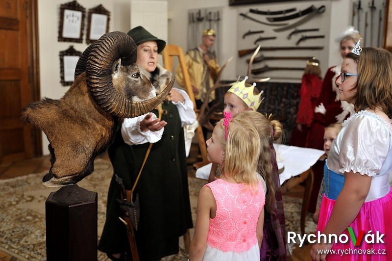 Na konci prohlídky je čekali různé zvuky vábniček a troubení z lesního rohu, který vše slavnostně zakončil. Vše bylo uzpůsobeno pro malé návštěvníky. Akce se moc vydařila, a proto patří velké poděkování manželům Kolowratovým i celému zámku za velmi vstřícný přístup, dále Městu Rychnovu nad Kněžnou a Královéhradeckému kraji za podporu této ojedinělé akce. Na akci se podíleli i dobrovolníci EDS v rámci projektu Erasmus+ a kolem 40 pomocníků. Všem patří velké poděkování a těšíme se opět na příští rok!