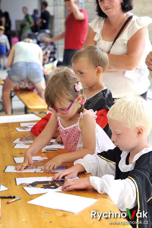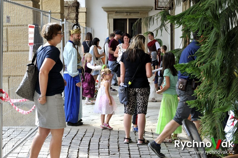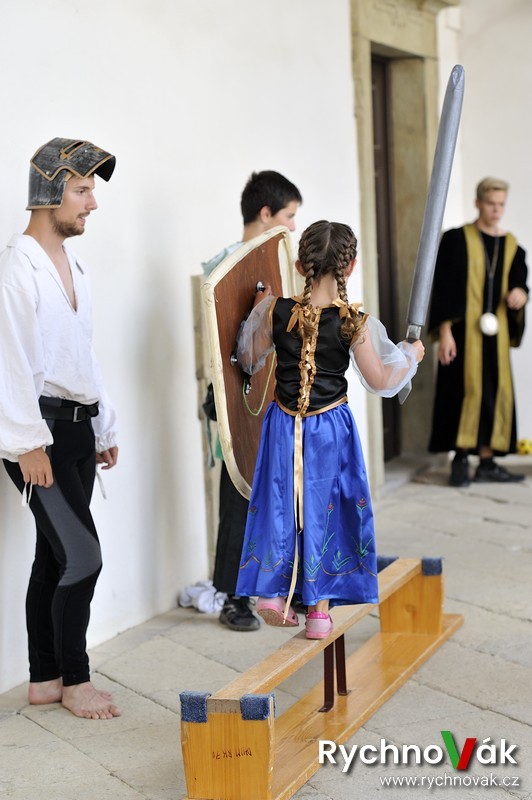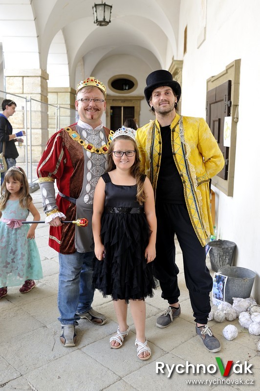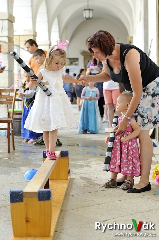 Všichni měli možnost si na chvilku vyzkoušet život na zámku. Ani oprava přední fasády zámku neodradila velkou návštěvnost a krásné počasí přispělo k pohodové atmosféře. Na prvním nádvoří bylo rozestavěno 30 různých úkolů jak pro princezny, tak pro rytíře od bludiště, střelby z praku, navlékání korálů, seznámení se zámeckou etiketou, chůze po laně, souboje s drakem, šermování, slalom, malování na obličej a bublifuky.