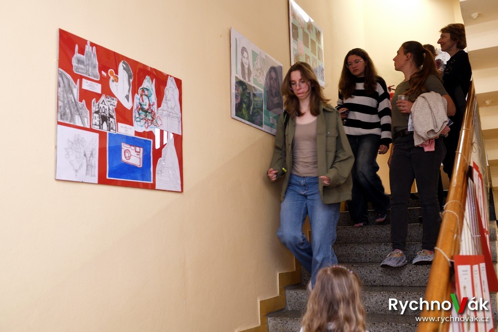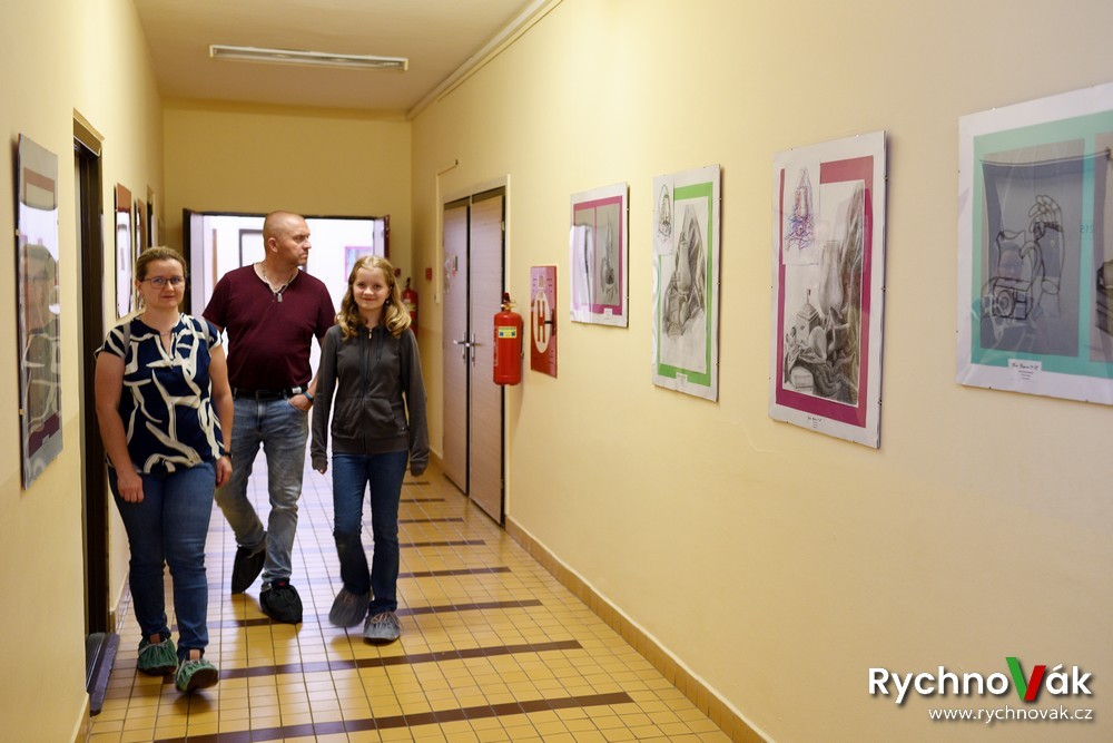 Výstava je otevřená veřejnosti, stačí zazvonit na kancelář školy a vkročit do světa umění. Rozhodně stojí za zhlédnutí!