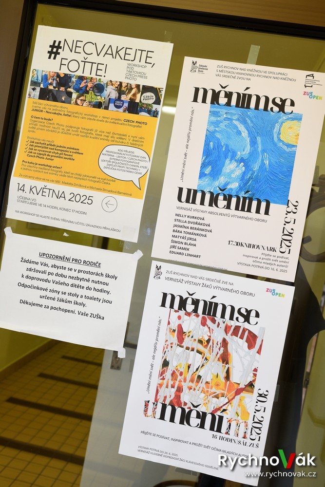 V pátek 30. 5. 2025 v 16 hodin odstartovala slavnostní vernisáž výstavy žáků výtvarného oboru s názvem Měním se uměním. Tato, pro výtvarníky, výjimečná událost byla zahájena v koncertním sále hudebními a dramatickými výstupy žáků klávesového a literárně-dramatického oddělení.