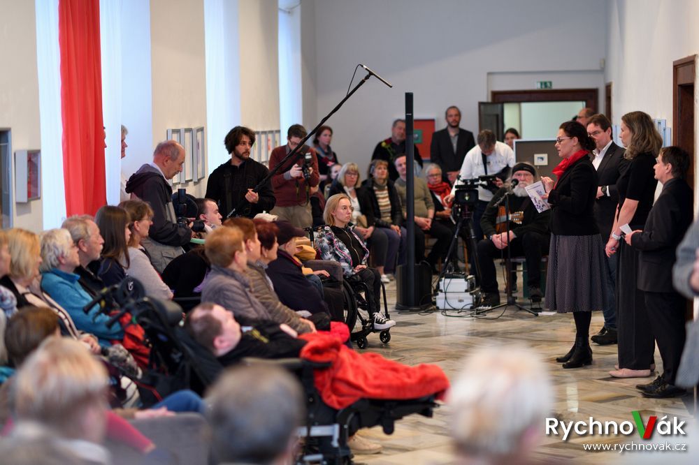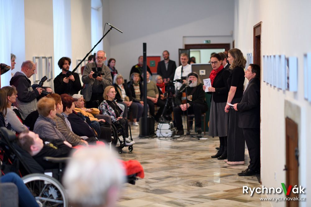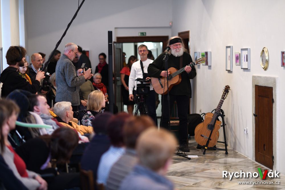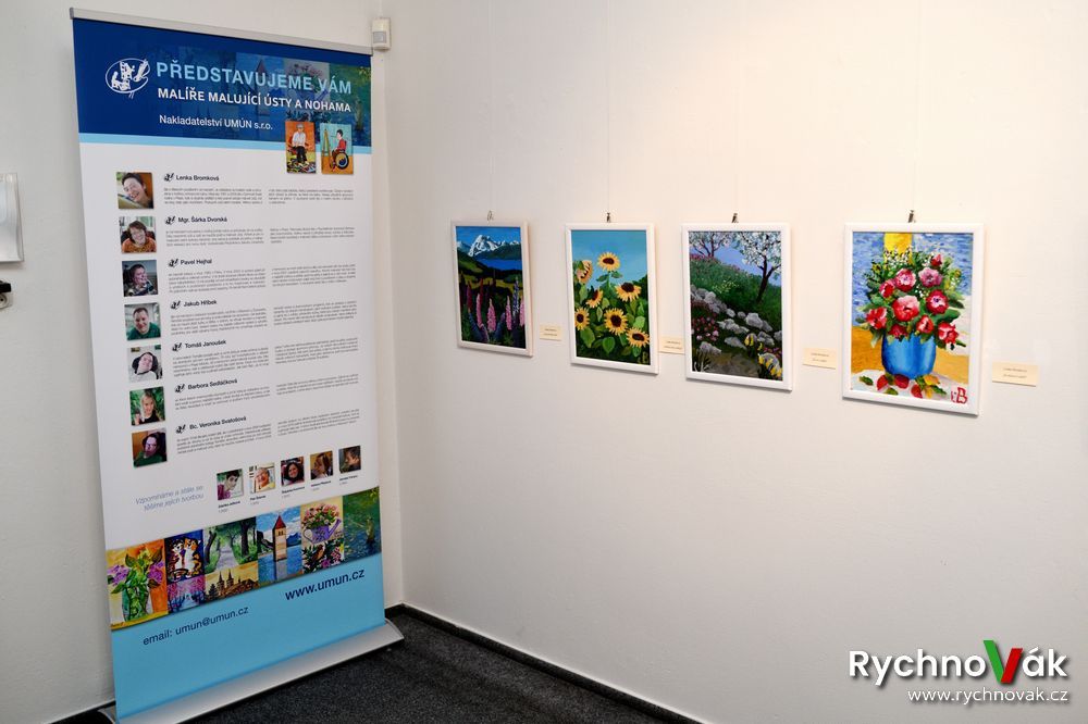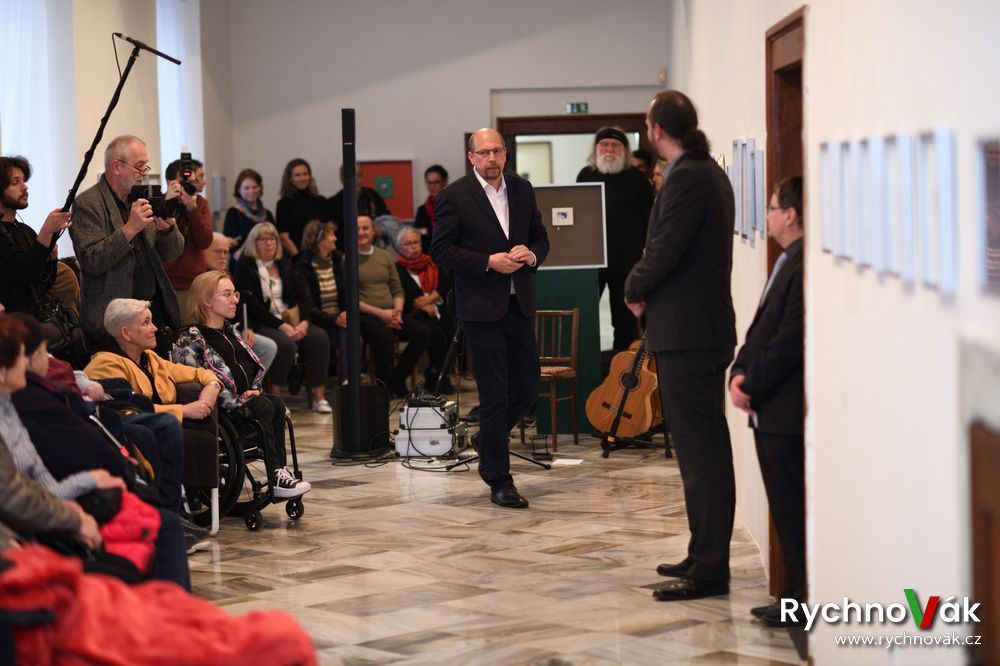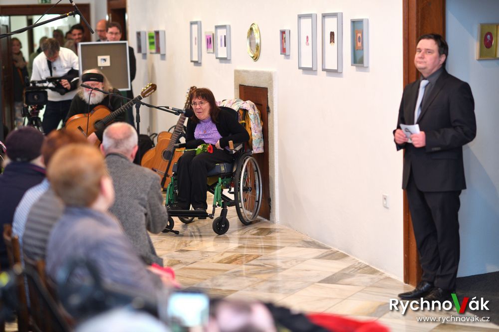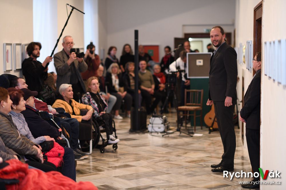 Za Nakladatelství malířů malujících ústy a nohama promluvila Michaela Žumárová k výstavě Ne ruka, to srdce maluje a za hendikepované umělce hovořila Šárka Dvorská. Autorskou hudební tvorbou zpříjemnil vernisáž Stanislav Klecandr.