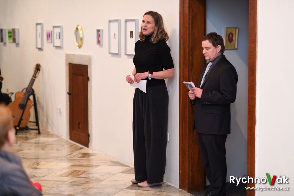 Na paní vedoucí navázal Vlastislav Tokoš kurátor Orlické galerie a představil právě otvírané výstavy: Ne ruka, to srdce maluje, Jan Slavíček (1900-1970) a Antonín Sondej / The Moment.